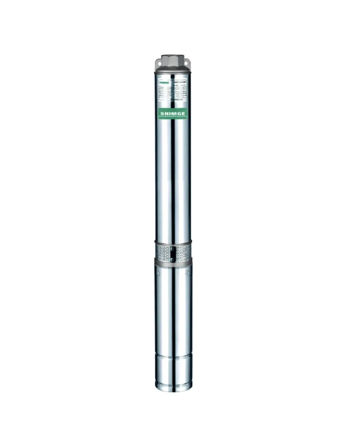 Принцип роботи відцентрового глибинного насоса Shimge 4SPm 4/14-1.1: Електродвигун рухає вал із закріпленими на ньому сталевими робочими колесами. Багатоступінчаста гідравлічна частина послідовно збільшує тиск потоку води, дозволяючи піднімати рідину з більших глибин. Проточна вода ефективно охолоджує корпус насоса, захищаючи двигун від перегріву навіть при тривалій безперервній роботі.