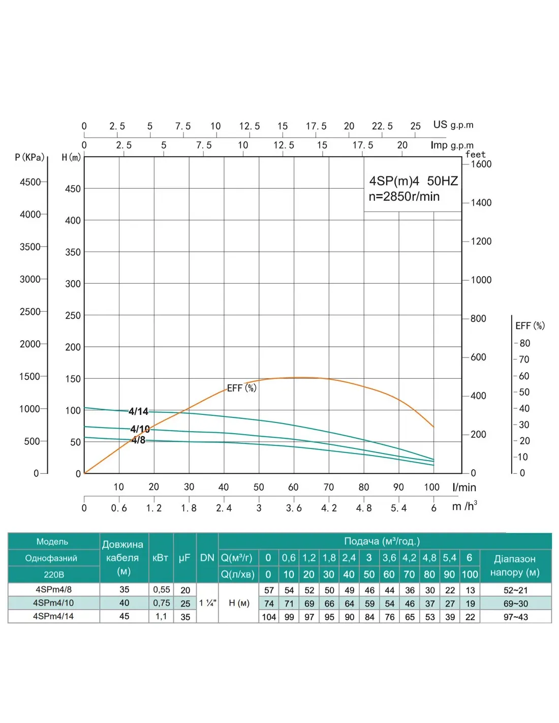 Конструктивні та технічні характеристики Shimge 4SPm 4/14-1.1: