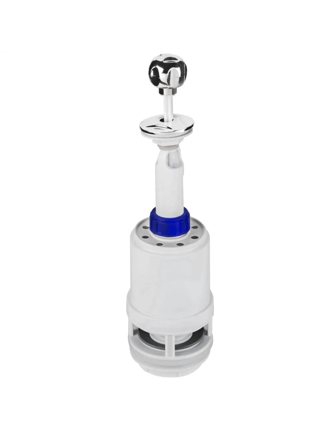 Запірна арматура на унітаз SoloPlast АБу-2 29179 виконана з якісного пластику білого кольору з круглою хромованою кнопкою для приведення спускного механізму в дію. Виріб встановлюється у зливний бачок унітазу.