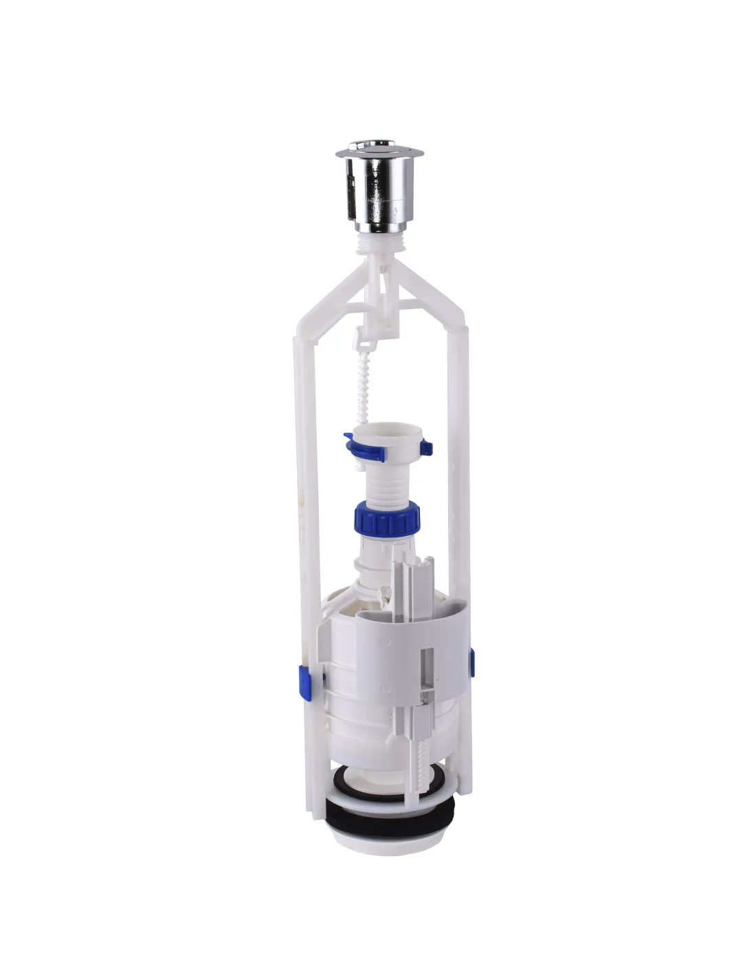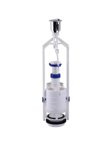 Запорная арматура на унитаз Kkpol BIS 350/ZSD/207-00-T0 выполнена из качественного пластика белого цвета с хромированной круглой кнопкой для приведения спускного механизма в действие. Изделие устанавливается в сливной бачок унитаза.