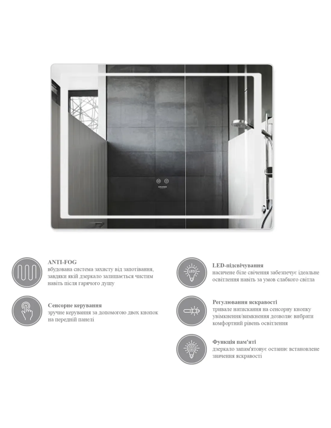 Зеркало Kroner KRP Spiegel HR2 - 8060 с LED-подсветкой и антизапотеванием