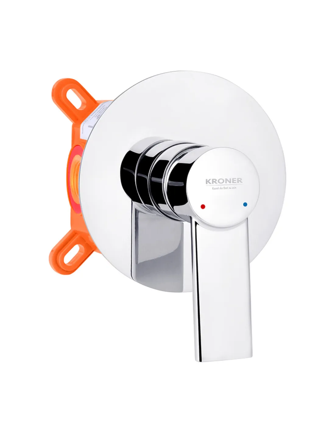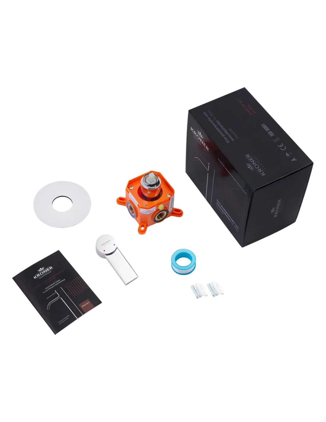 Змішувач для душу Kroner KRP Basis - C080 прихованого монтажу сучасне сантехнічне рішення, при якому підводи для води та основні елементи кріплення вбудовуються в стіну, а зовні залишаються тільки елементи управління та подачі води, такі як: рукоятка. Змішувач виготовлений із латуні, а його компоненти із надійних міцних матеріалів. Потребує професійного монтажу та планування на етапі ремонту, т.к. основні елементи підведення води буде вмонтовано у стіну без доступу до ремонту. Тип керування змішувачем – одноважільний, поворот важеля використовується для регулювання температури подачі води. Змішувач та його компоненти покриті якісним хромом, який не стирається у процесі експлуатації. Тип підключення - жорстке підведення, прихований монтаж. Діаметр підведення води – 1/2 дюйма. Гарантія на виріб 60 місяців. Країна виробник - Німеччина.