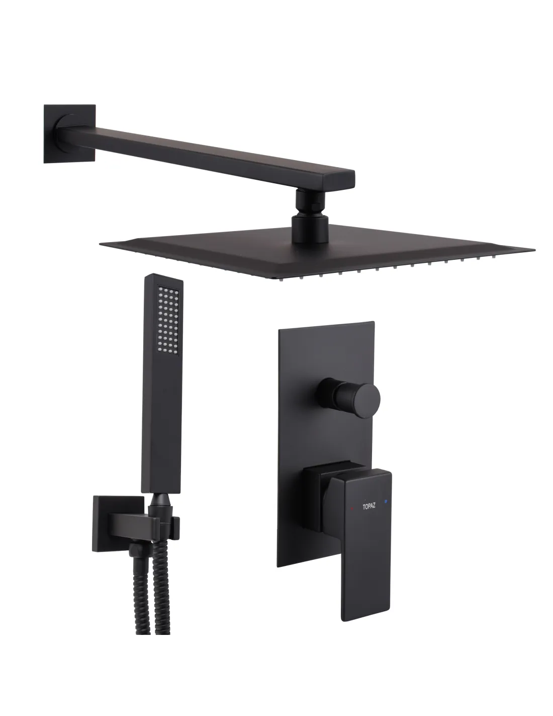 Змішувач для душу Topaz Odiss TO-18205-H66-BL - призначений для регулювання температури та подачі води із встановленим напором на верхній душ або ручну лійку. Використовується у ванній кімнаті для ванни або душу. Виготовлений із латуні, фактура поверхні - матова. Колір виробу: чорний. Кран має сучасний дизайн, простий у використанні. Установка змішувача проводиться прихованим монтажем, вбудовується основна частина за кахель або плитку у ванній кімнаті. Змішувач без виливу. У комплекті також постачається душовий шланг, лійка. Управління краном – одноважільне, також важіль використовується для регулювання температури та напору подачі води. Тип підключення – жорсткі підводи для води. Гарантія на виріб 12 місяців. Країна-виробник - Польща.