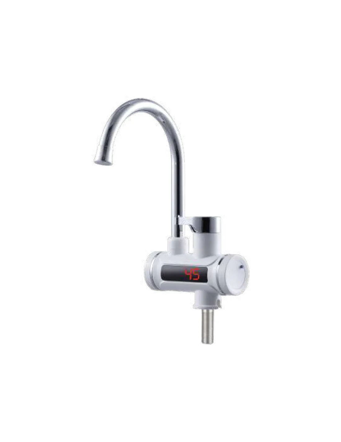 Змішувач для кухні з підігрівом води Aquatica 9792103 призначений для подачі та нагрівання води своїм вбудованим ТЕНом. Найчастіше використовується на кухні. Встановлюється на кухонну мийку або стільницю. Матеріал виливу - нержавіюча сталь, корпус виготовлений із пластику. Виготовлений у сучасному стилі. Вилив кольору хром з глянсовою поверхнею, корпус виконаний у білому кольорі. Монтаж змішувача - врізний за допомогою затискної гайки. Тип підключення до водопроводу - гнучкі шланги, що підводяться. Живлення від мережі 220 В. Електричний водонагрівач підігріває воду за допомогою вбудованого термостату. Оснащений одним вентилем регулювання напору та температури води при його повороті у потрібну сторону. Потужність: 3,3 кВт. Гарантія: 12 місяців. Країна-виробник: Китай.