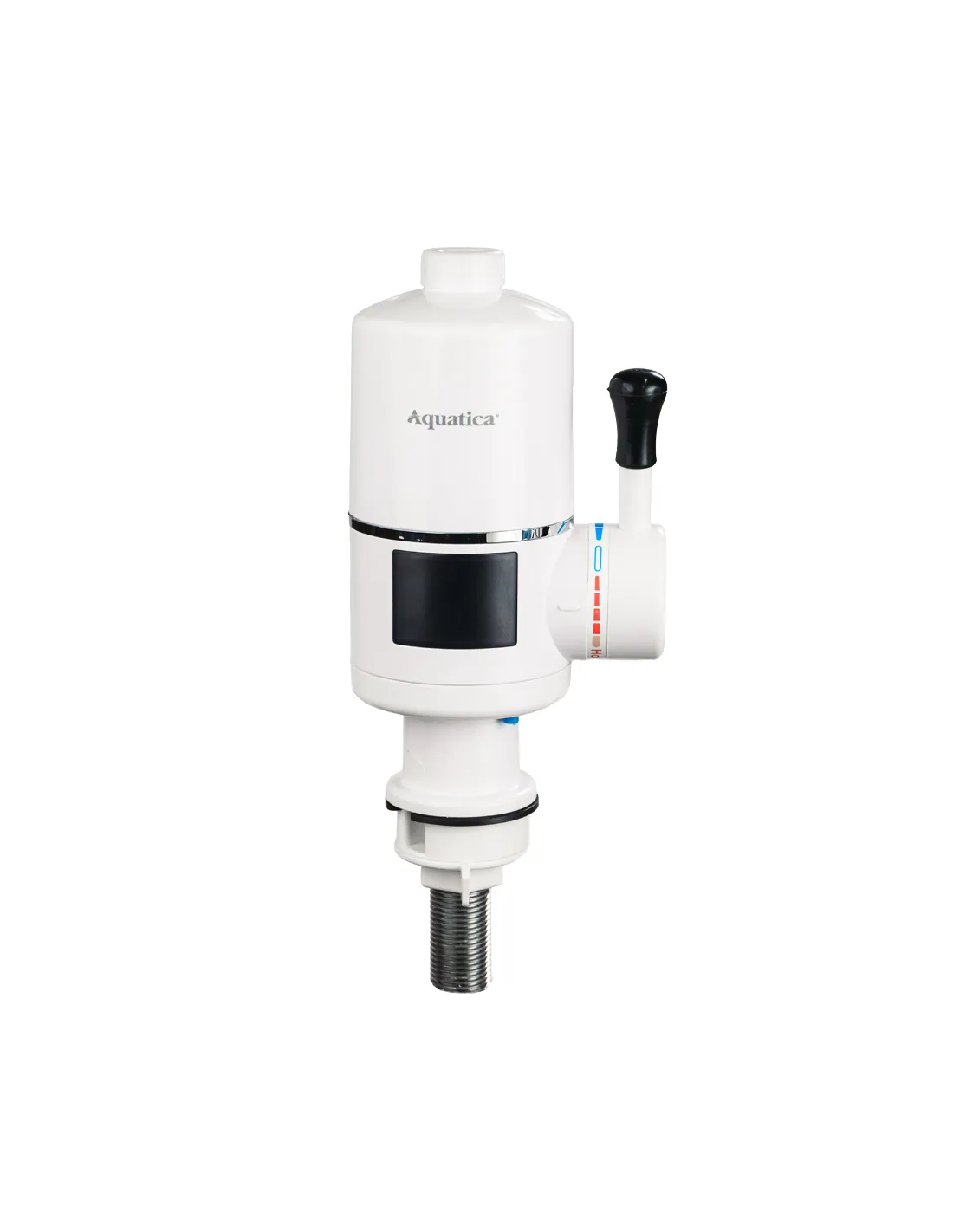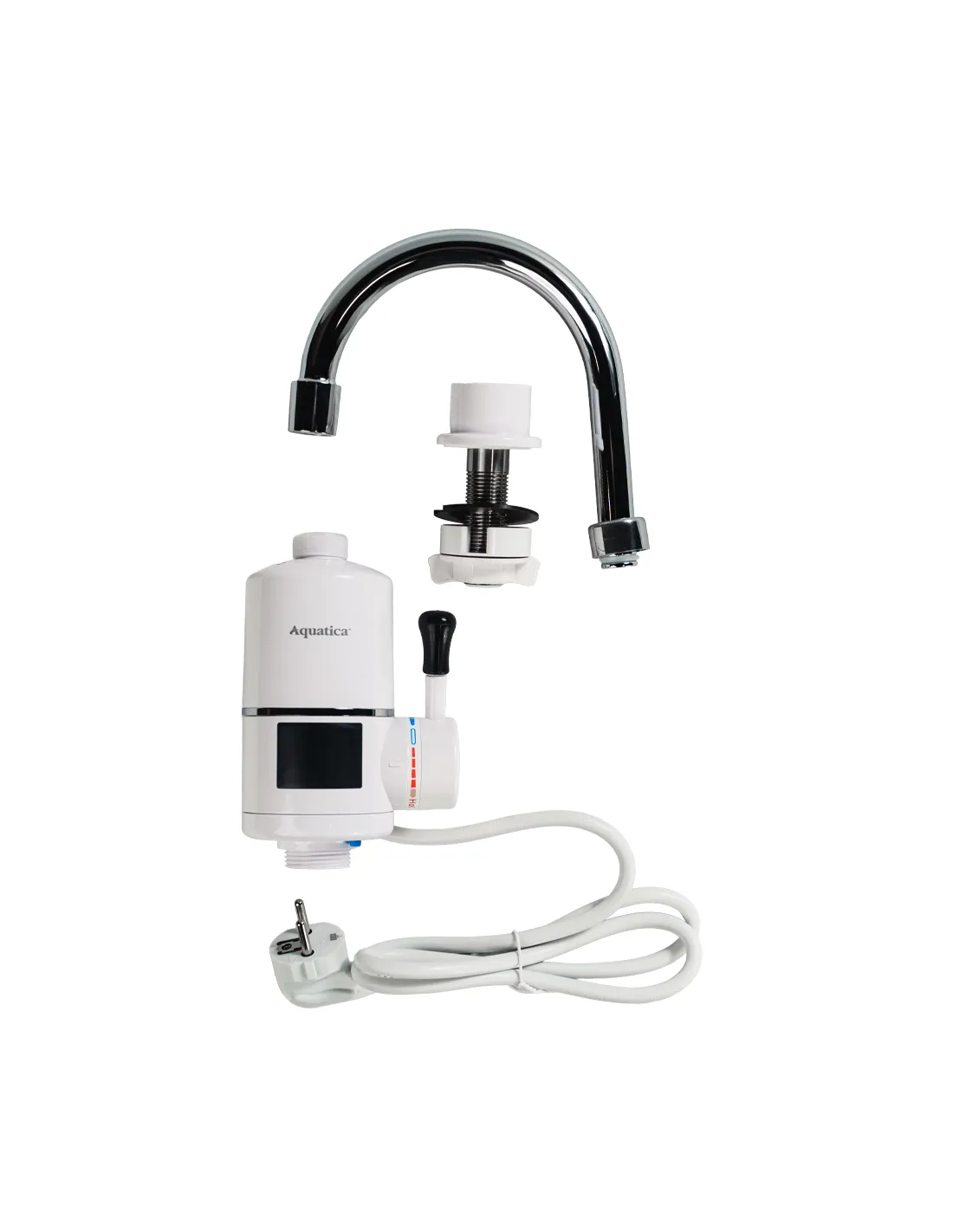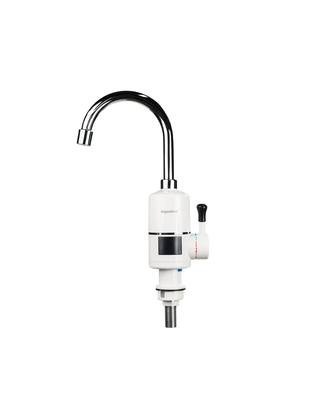 Змішувач для кухні з підігрівом води Aquatica 9796113 гармонійно впишеться в інтер`єр кожної кухні. Призначений для подачі та нагрівання води на кран із потрібним напором. Конструктивні особливості у підігріві води за допомогою ТЕНу. Водонагрівач проточного типу, що заощаджує простір. Механізм змішування - кран-букс.