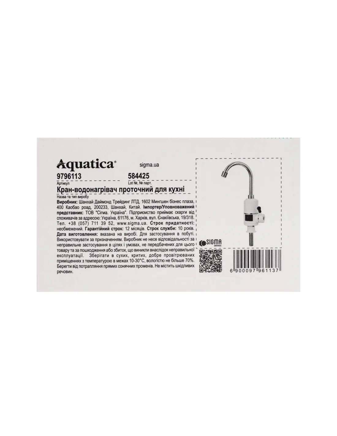Комплектація змішувача для кухні з підігрівом води Aquatica 9796113: