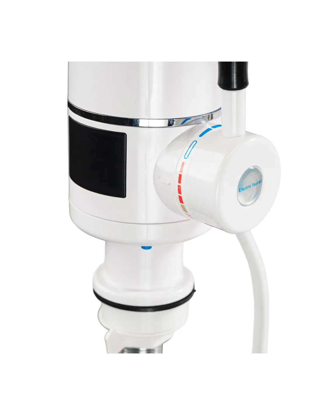 Змішувач для кухні з підігрівом води Aquatica 9796113 призначений для подачі та нагрівання води своїм вбудованим ТЕНом. Найчастіше використовується на кухні. Встановлюється на кухонну мийку або стільницю. Матеріал виливу - латунь, корпус виготовлений із пластику. Виготовлений у сучасному стилі. Вилив кольору хром з глянсовою поверхнею, корпус виконаний у білому кольорі. Монтаж змішувача - врізний за допомогою затискної гайки. Тип підключення до водопроводу - гнучкі шланги, що підводяться. Живлення від мережі 220 В. Електричний водонагрівач підігріває воду за допомогою вбудованого термостату. Оснащений одним вентилем регулювання напору та температури води при його повороті у потрібну сторону. Потужність: 3,3 кВт. Гарантія: 12 місяців. Країна-виробник: Китай.