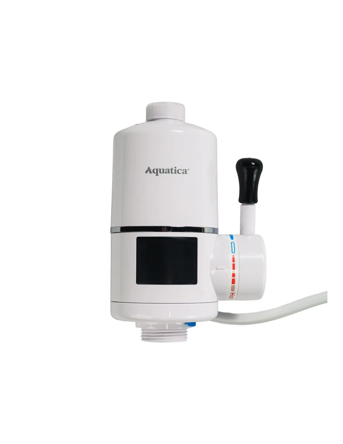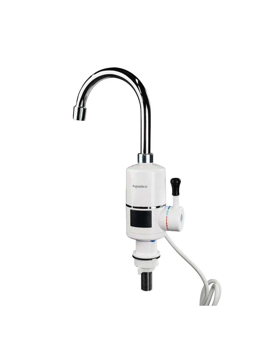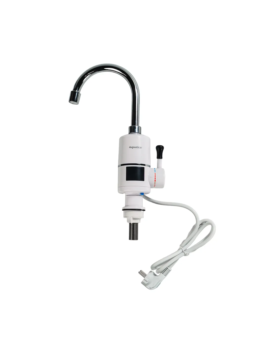Змішувач для кухні з підігрівом води Aquatica 9796133 гармонійно впишеться в інтер`єр кожної кухні. Призначений для подачі та нагрівання води на кран із потрібним напором. Конструктивні особливості у підігріві води за допомогою ТЕНу. Водонагрівач проточного типу, що заощаджує простір. Механізм змішування - кран-букс.