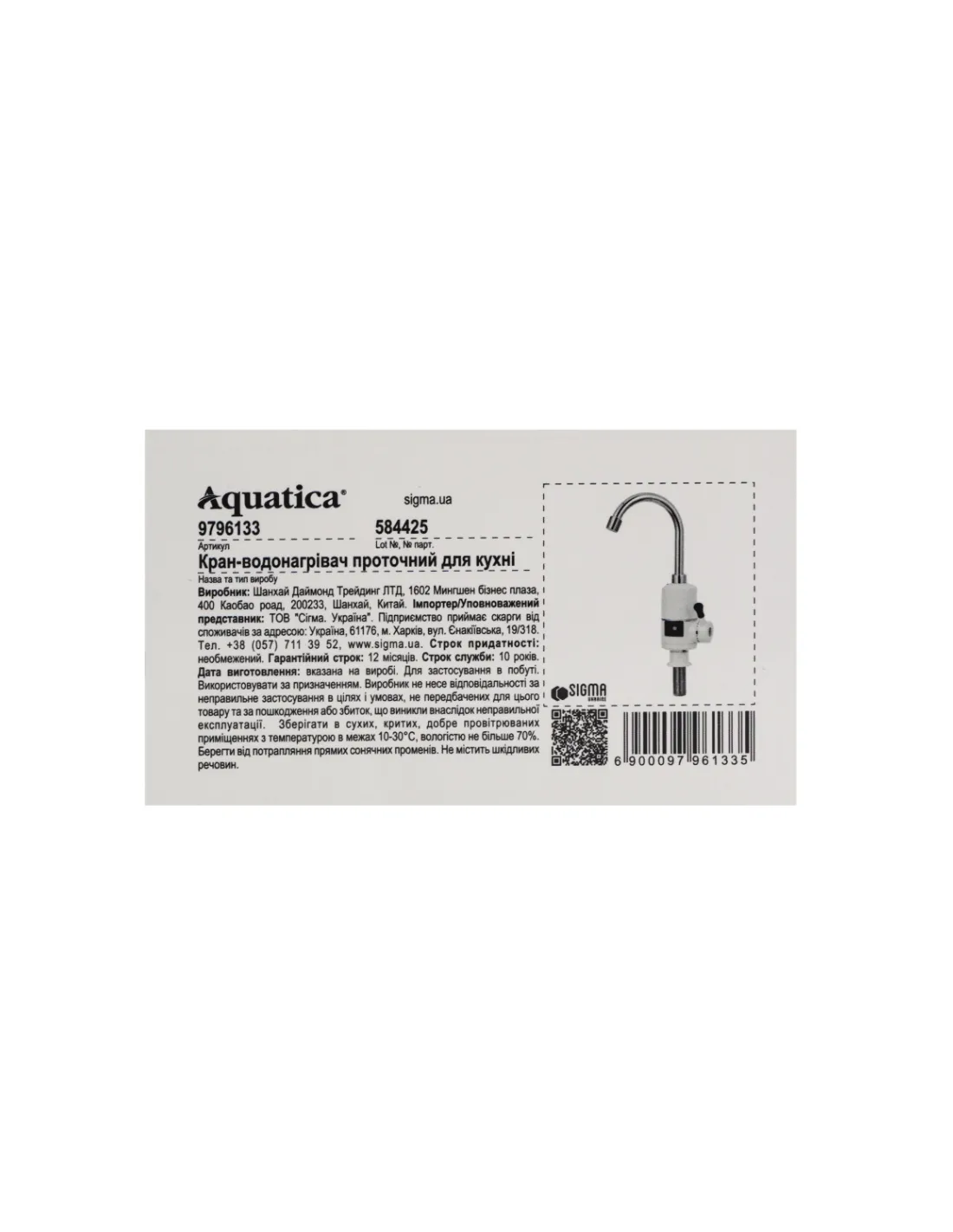Комплектація змішувача для кухні з підігрівом води Aquatica 9796133: