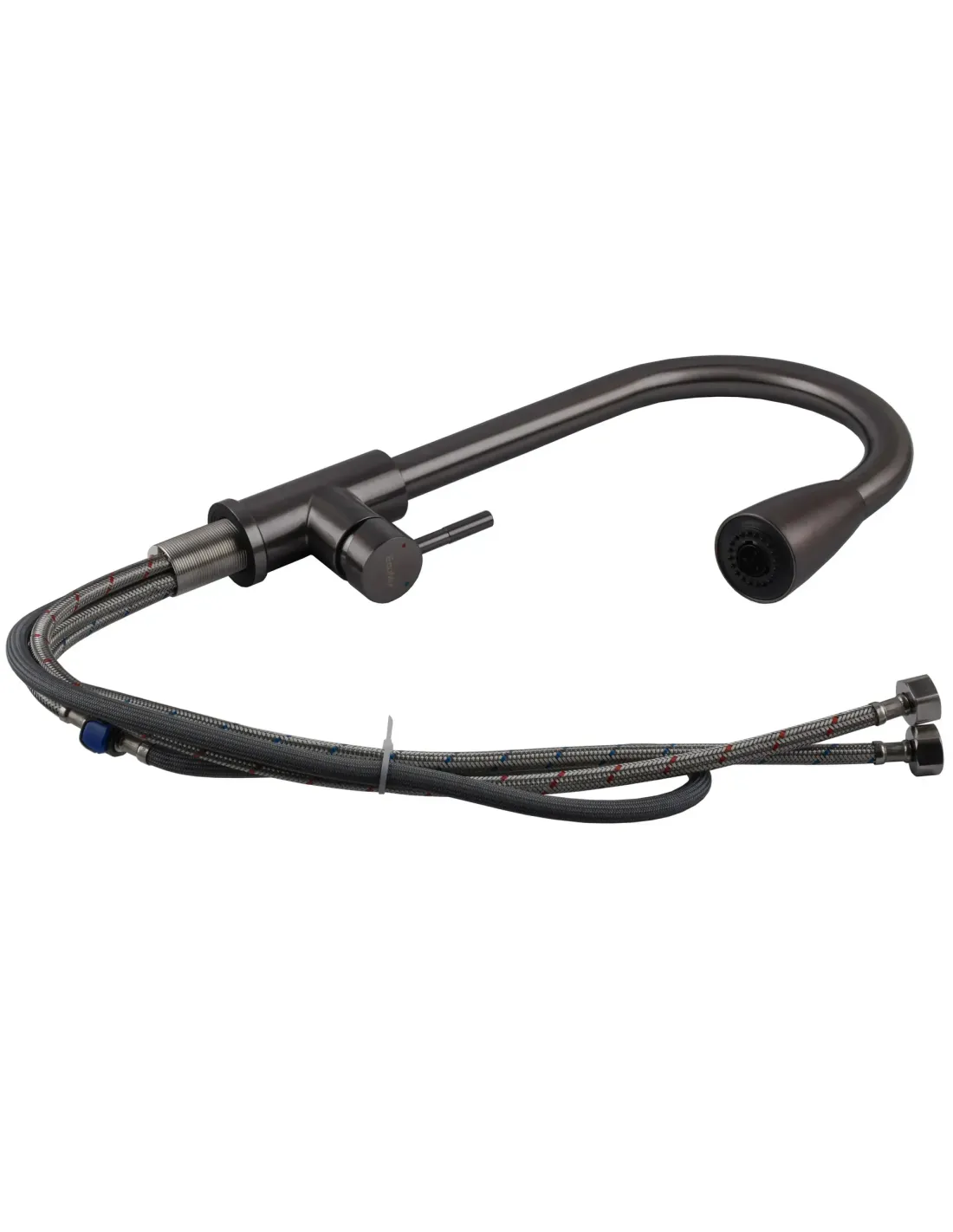 Змішувач для кухні з висувним виливом Ecomix Stella - призначений для змішування гарячої та холодної води та подачі її на вилив споживачу. Висувний вилив дозволяє легко та зручно наповнювати великі ємності та очищати важкодоступні ділянки. Використовується кран на кухні. Встановлюється на кухонну мийку або стільницю. Матеріал виробу крана – нержавіюча сталь. Виготовлений у сучасному стилі, у чорному кольорі з матовою поверхнею. Монтаж змішувача - врізний за допомогою затискної гайки. Тип підключення до водопроводу - гнучкі шланги, що підводяться. Оснащений одним важелем регулювання напору та температури води при його піднятті вгору та повороті в потрібну сторону. Гарантія: 12 місяців. Країна-виробник: Китай.