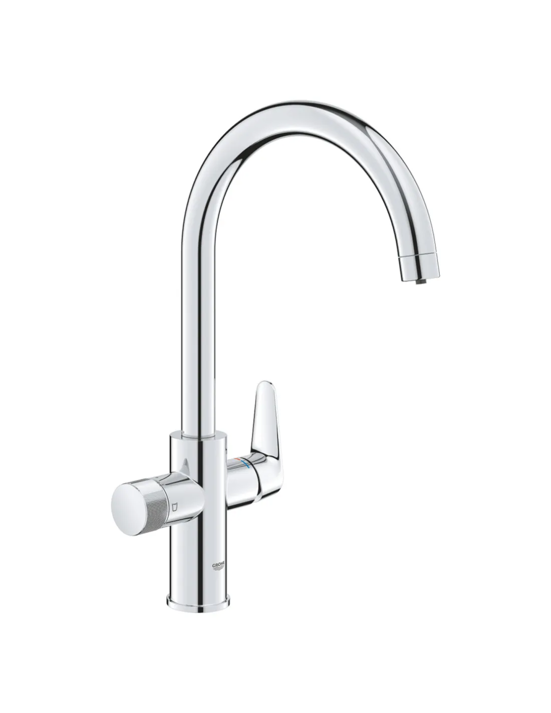 Змішувач для кухні Grohe StartCurve 30592000 має два контури: один для подачі гарячої та холодної води, другий — для подачі питної води. Це робить модель ідеальною для використання із системами фільтрації.