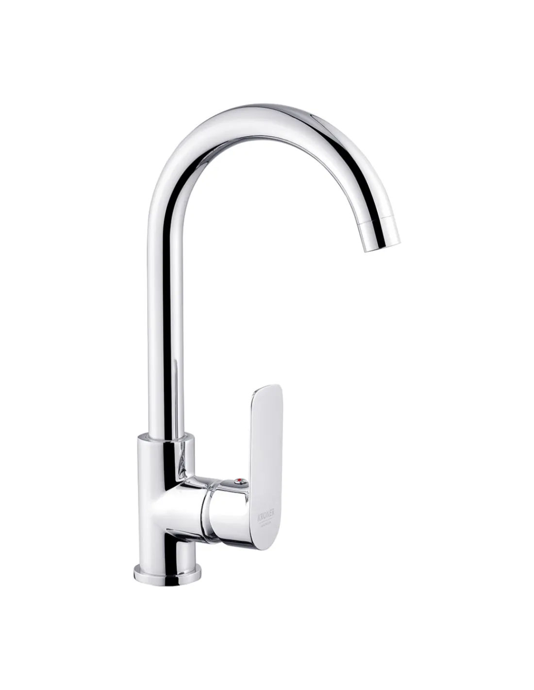 Змішувач для кухні Kroner KRM Main – C030 – практичне рішення для кухонного простору. Виготовлений із силуміну з глянсовим хромованим покриттям, відрізняється стійкістю до корозії та сучасним дизайном. Оснащений поворотним U-подібним виливом та одноважільний керуванням для зручного регулювання температури та напору води. Монтаж здійснюється урізним способом за допомогою гайки. Шланги підключення входять до комплекту.