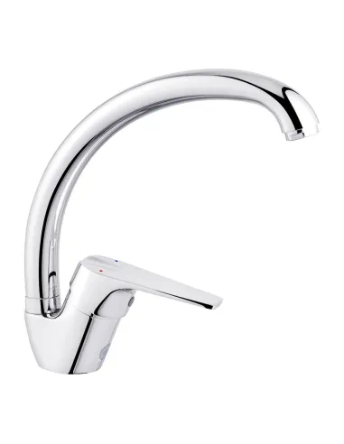 Тип кухонного змішувача – одноважільний, оснащений поворотним С-подібним виливом, довжина виливу – 21 см, висота виливу 21 см. Робочий тиск до 3 Бар, витрата води до 13 л/хв. Вилив обертається на 360 градусів, що дозволяє його використовувати для кухонних мийок із двома або трьома чашами.