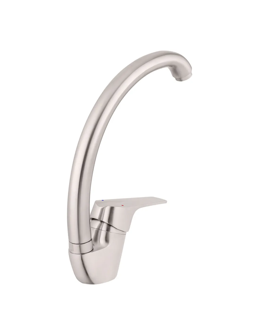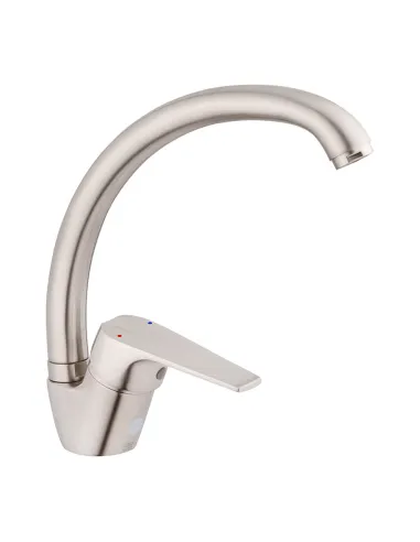 Тип кухонного змішувача – одноважільний, оснащений поворотним С-подібним виливом, довжина виливу – 23.5 см, висота виливу 20.5 см. Робочий тиск до 3 бар, витрата води до 13 л/хв. Вилив обертається на 360 градусів, що дозволяє його використовувати для кухонних мийок із двома або трьома чашами.