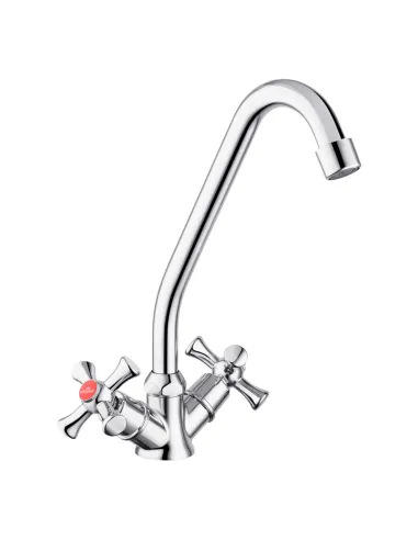 Тип кухонного змішувача - двовентильний, оснащений поворотним С-подібним виливом, довжина виливу - 16 см, висота виливу 22 см. Робочий тиск до 3 Бар, витрата води до 13 л/хв. Вилив обертається на 360 градусів, що дозволяє його використовувати для кухонних мийок із двома або трьома чашами.