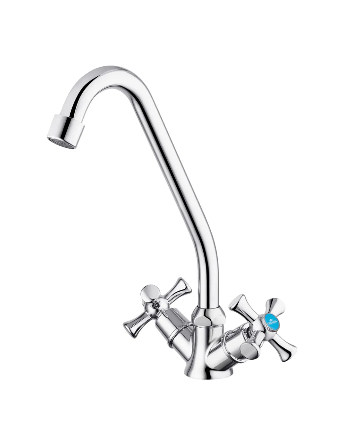 Змішувач для кухні двовентильний Kroner KRM Rhein - C030 гармонійно впишеться в інтер`єр кожної кухні. Призначений для підведення на кран гарячої та холодної води, змішування її та подачу з потрібним натиском споживачеві. Конструктивні особливості у двох вентильному керуванні змішувачем. Змішувач моделі KRM Rhein - C030 виконаний за всіма технологіями та стандартами із силуміну. Механізм змішування води через кран-букс. Кран-букс із високоякісного матеріалу забезпечить довговічність служби завдяки високому ресурсу. Навіть якщо у водопровідній системі різко підвищиться тиск, кран-букс витримає навантаження. При перемиканні та плавному регулюванні сили напору води не створює зайвого шуму.
