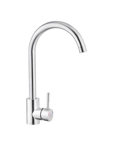 Тип кухонного змішувача – одноважільний, оснащений поворотним U-подібним виливом, довжина виливу – 18.5 см, висота виливу 25 см. Робочий тиск до 3 бар, витрата води до 13 л/хв. Вилив обертається на 360 градусів, що дозволяє його використовувати для кухонних мийок із двома або трьома чашами.