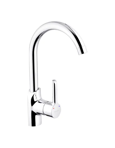 Тип кухонного змішувача – одноважільний, оснащений поворотним U-подібним виливом, довжина виливу – 17.5 см, висота виливу 23 см. Робочий тиск до 3 бар, витрата води до 13 л/хв. Вилив обертається на 360 градусів, що дозволяє його використовувати для кухонних мийок із двома або трьома чашами.