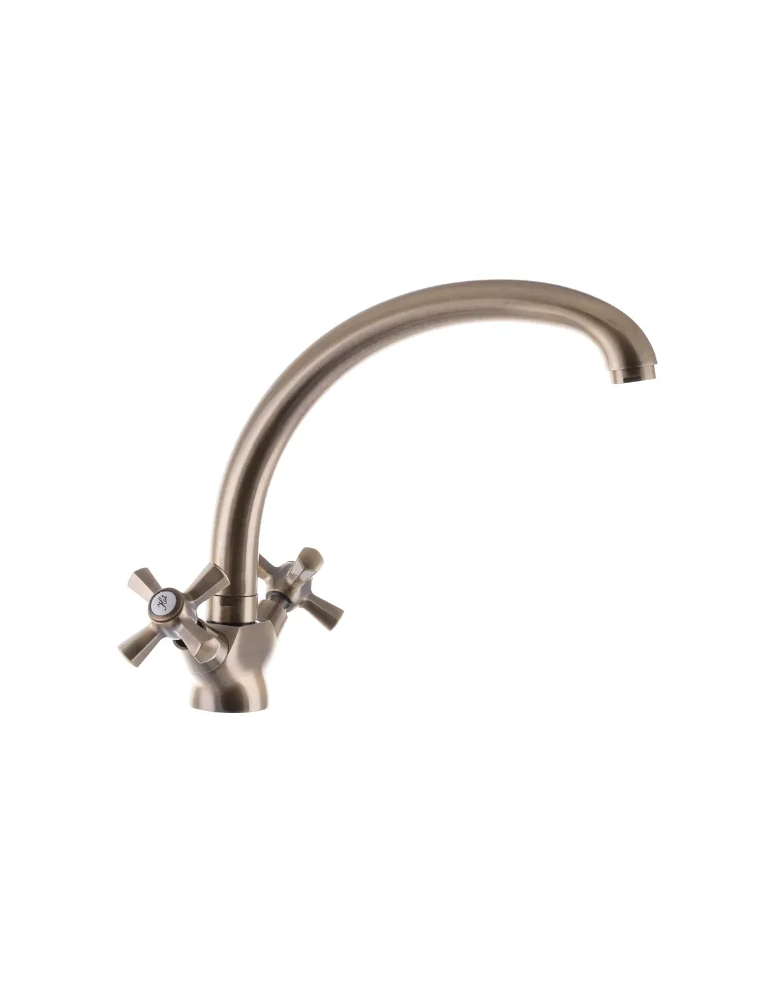Тип кухонного змішувача – двовентильний, оснащений поворотним зливом. Вилив обертається на 180 градусів, що дозволяє його використовувати для кухонних мийок з двома або трьома чашами.