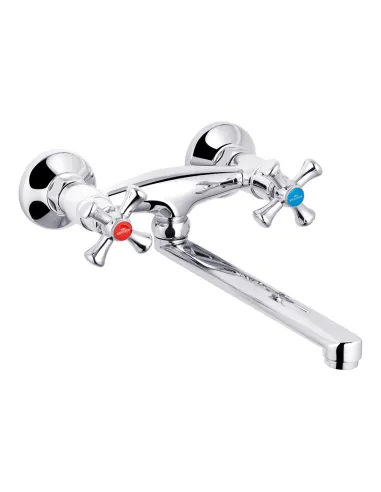 Настінний змішувач для кухні Kroner KRM Rhein - C040 двовентильний гармонійно впишеться в інтер`єр кожної кухні. Призначений для підведення на кран гарячої та холодної води, змішування її та подачу з потрібним натиском споживачеві. Конструктивні особливості у двох вентильному керуванні змішувачем. Змішувач моделі Kroner KRM Rhein - C040 двовентильний виконаний за всіма технологіями та стандартами із силуміну. Механізм змішування води через картридж діаметром 35 мм. Картридж із високоякісного матеріалу забезпечить довговічність служби завдяки високому ресурсу пластин. Навіть якщо у водопровідній системі різко підвищиться тиск, картридж витримає навантаження. При перемиканні та плавному регулюванні сили напору води не створює зайвого шуму.