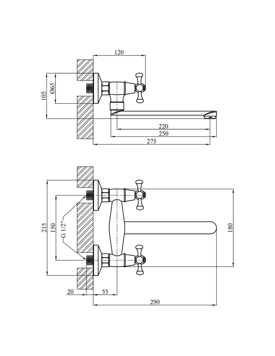 Настінний змішувач для кухні Kroner KRM Rhein - C040 двовентильний має 2 входи для підключення. Перший вхід для під`єднання гарячої води. Другий для підключення холодної води.