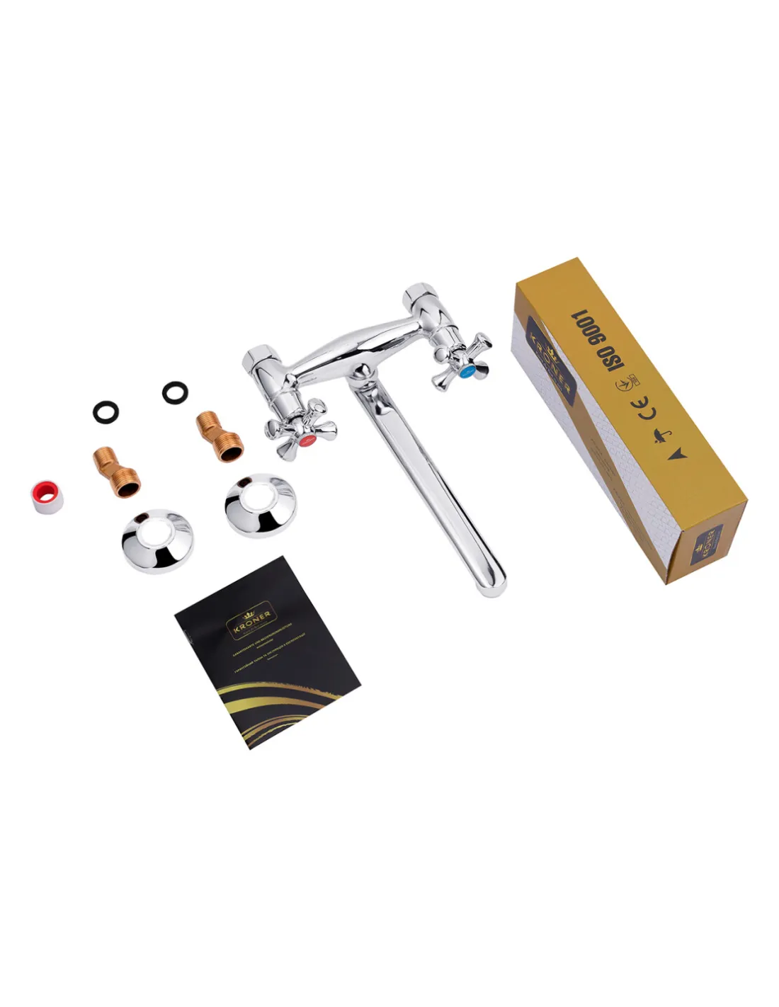 Настінний змішувач для кухні Kroner KRM Rhein - C040 двовентильний призначений для подачі води за допомогою регуляторів - вентилів. Використовується на кухні. Встановлюється на стіну над кухонною мийкою або стільницею. Матеріал виробу крана – силумін. Виготовлений у класичному стилі, у кольорі хром із глянсовою поверхнею. Монтаж змішувача – на стіну, за допомогою ексцентриків. Тип підключення до водопроводу - жорсткі шланги, що підводяться. Оснащений двома напівоборотними вентилями для регулювання напору та температури води. Гарантія: 36 місяців. Країна виробник: Німеччина.