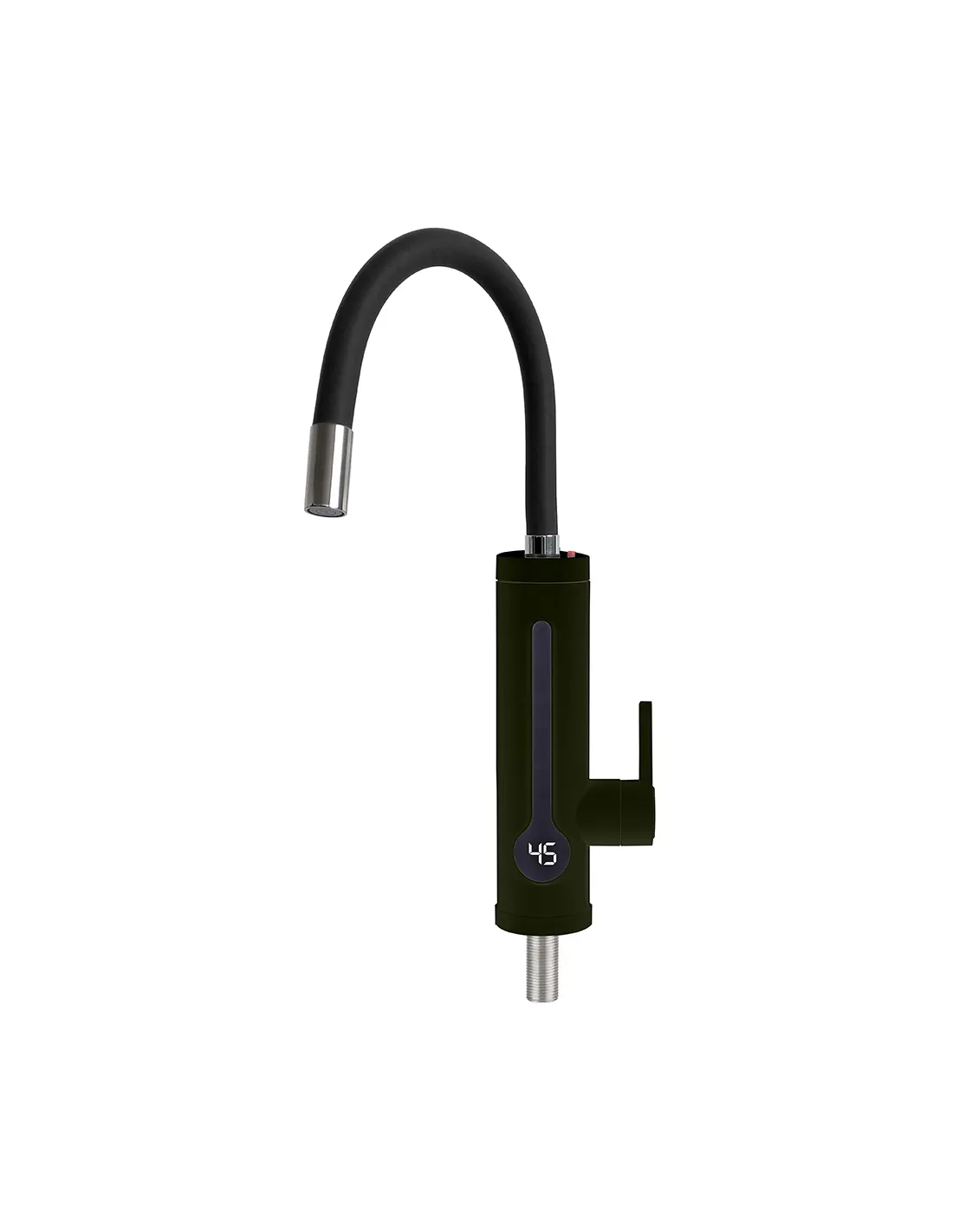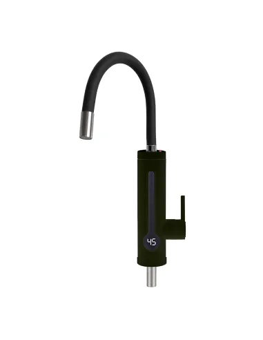 Змішувач для кухні з підігрівом води Wezer SDR-G8TR-Black призначений для подачі та нагрівання води своїм вбудованим ТЕНом. Найчастіше використовується на кухні. Встановлюється на кухонну мийку або стільницю. Корпус виготовлений із пластику. Виготовлений у сучасному стилі. Виливши гнучкий, чорного кольору, з матовою поверхнею, корпус виконаний у чорному кольорі. Монтаж змішувача - врізний за допомогою затискної гайки. Тип підключення до водопроводу - гнучкі шланги, що підводяться. Живлення від мережі 220 В. Електричний водонагрівач підігріває воду за допомогою вбудованого терморегулятора. Оснащений одним важелем регулювання напору та температури води при його повороті у потрібну сторону. Потужність: 3.3 кВт. Гарантія: 12 місяців. Країна-виробник: Китай.