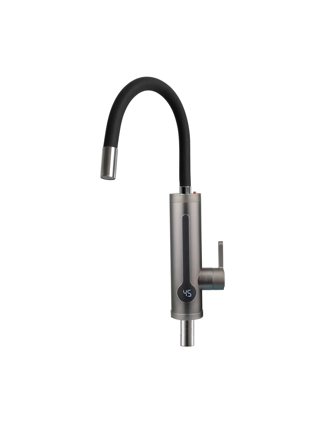 Змішувач для кухні з підігрівом води Wezer SDR-G8TR-Grey призначений для подачі та нагрівання води своїм вбудованим ТЕНом. Найчастіше використовується на кухні. Встановлюється на кухонну мийку або стільницю. Корпус виготовлений із пластику. Виготовлений у сучасному стилі. Виливши гнучкий, чорного кольору, з матовою поверхнею, корпус виконаний у сірому кольорі. Монтаж змішувача - врізний за допомогою затискної гайки. Тип підключення до водопроводу - гнучкі шланги, що підводяться. Живлення від мережі 220 В. Електричний водонагрівач підігріває воду за допомогою вбудованого терморегулятора. Оснащений одним важелем регулювання напору та температури води при його повороті у потрібну сторону. Потужність: 3.3 кВт. Гарантія: 12 місяців. Країна-виробник: Китай.