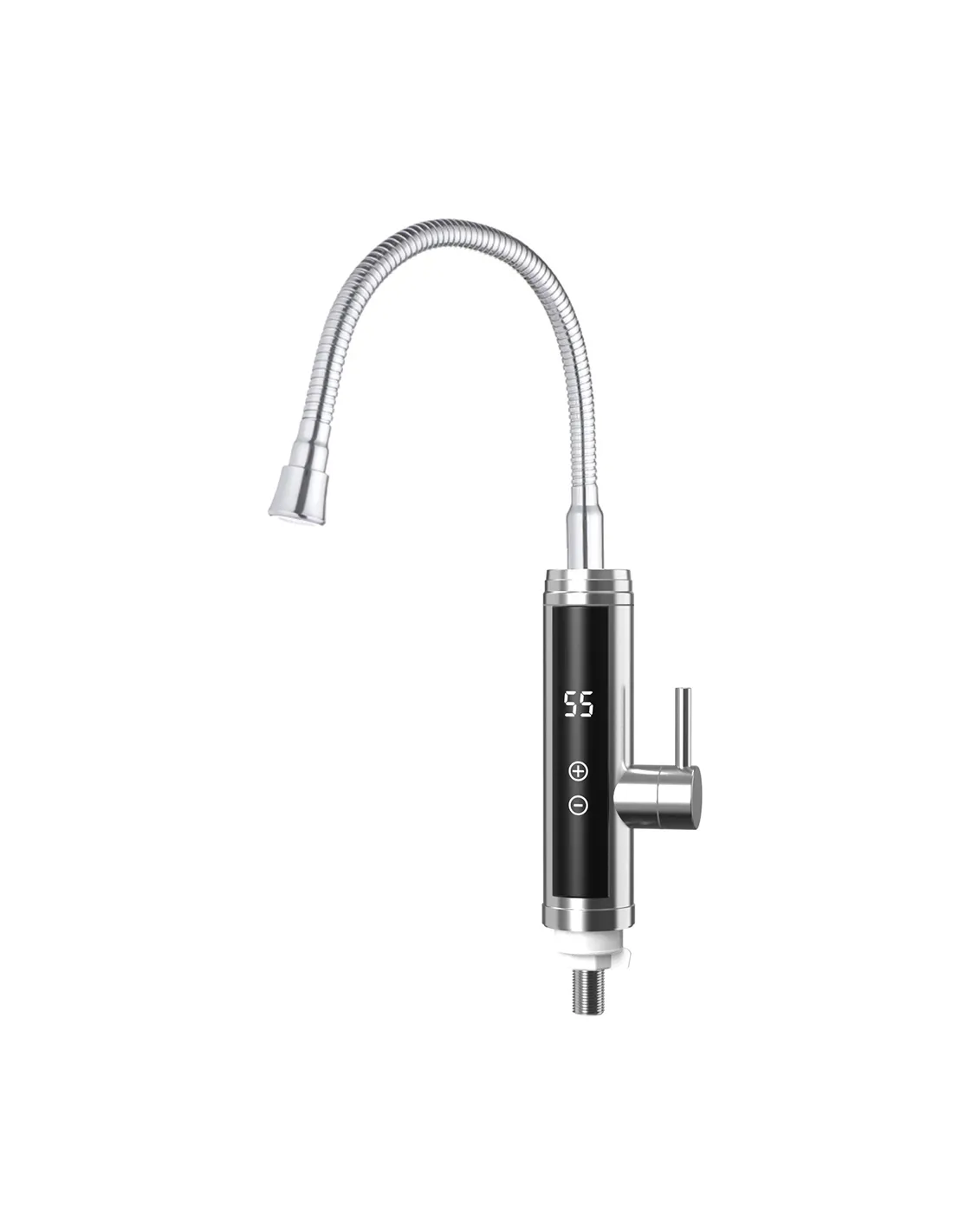 Змішувач для кухні з підігрівом води Wezer SDS-F9TC призначений для подачі та нагрівання води своїм вбудованим ТЕНом. Найчастіше використовується на кухні. Встановлюється на кухонну мийку або стільницю. Матеріал виливу - нержавіюча сталь, корпус виготовлений з нержавіючої сталі. Виготовлений у сучасному стилі. Вилив рефлекторний, кольори хром з глянсовою поверхнею, корпус виконаний у кольорі сатин. Монтаж змішувача - врізний за допомогою затискної гайки. Тип підключення до водопроводу - гнучкі шланги, що підводяться. Живлення від мережі 220 В. Електричний водонагрівач підігріває воду за допомогою вбудованого терморегулятора. Оснащений одним важелем регулювання напору та температури води при його повороті у потрібну сторону. Потужність: 3.3 кВт. Гарантія: 12 місяців. Країна-виробник: Китай.