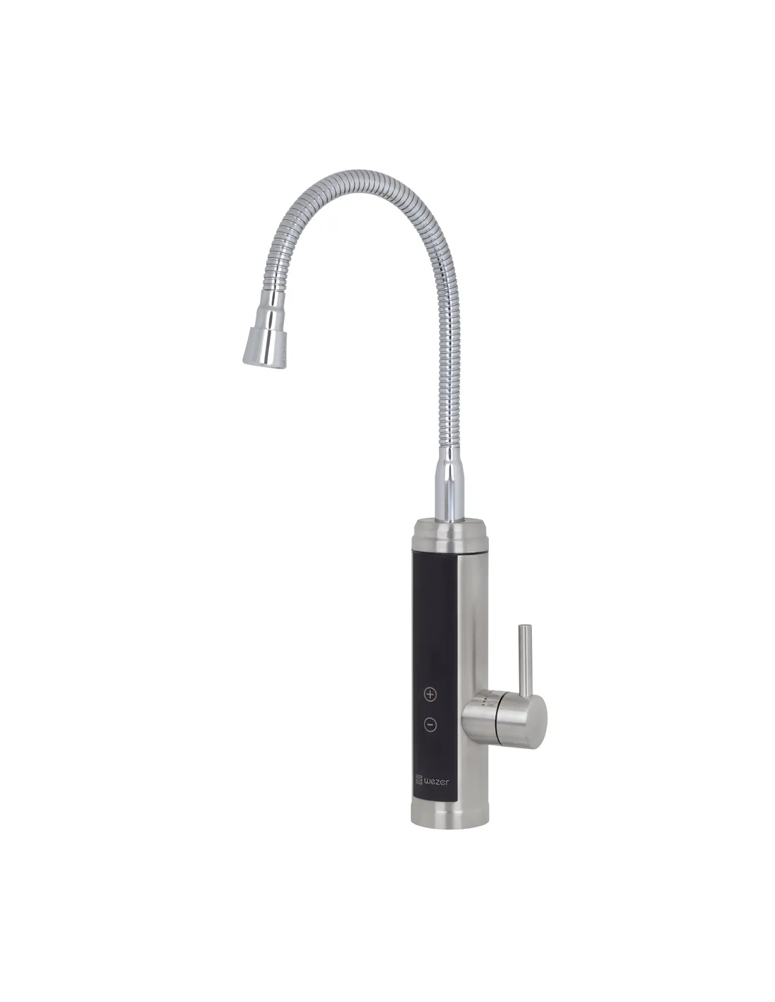 Змішувач для кухні з підігрівом води Wezer SDS-F9TC виготовлений з нержавіючої сталі. Має матове покриття, яке не стирається при тривалому використанні. У процесі виготовлення змішувача використано новітні інноваційні технології виробництва. Вилив поворотний.