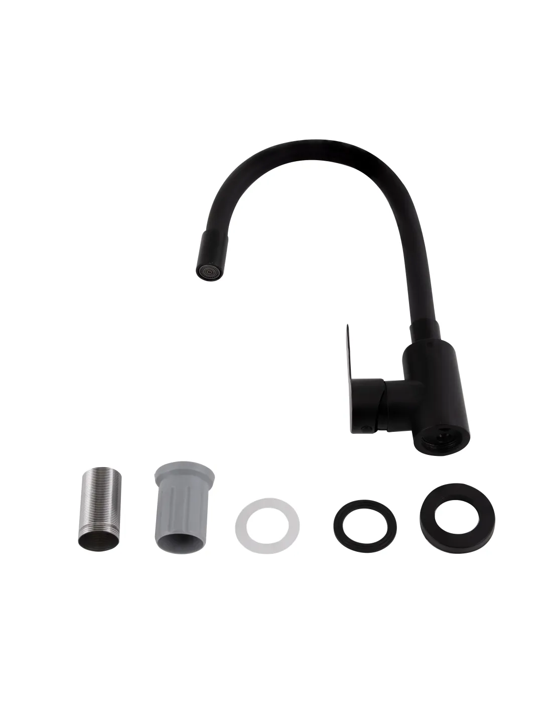 Змішувач для кухні з гнучким виливом Brinex Pure 015F3 BRIPUR015F3BLM чорний