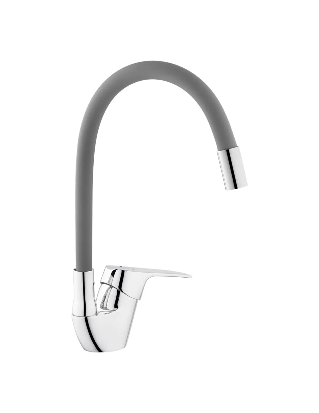 Тип кухонного змішувача – одноважільний, оснащений поворотним гнучким U-подібним виливом, завдяки чому підвищується функціональність та зручність використання крана. Висота виливу при повністю випрямленому положенні 270 мм. Робочий тиск до 3 бар, витрата води до 13 л/хв. Виливання гнеться під зручним кутом, що дозволяє його використовувати для кухонних мийок з двома або трьома чашами.