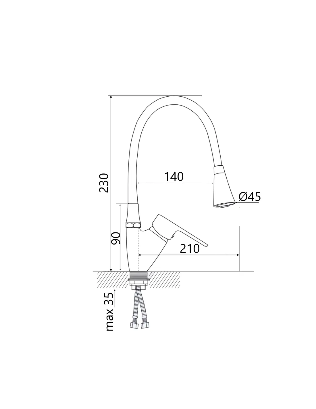 - Тип підключення - гнучкі підводи,