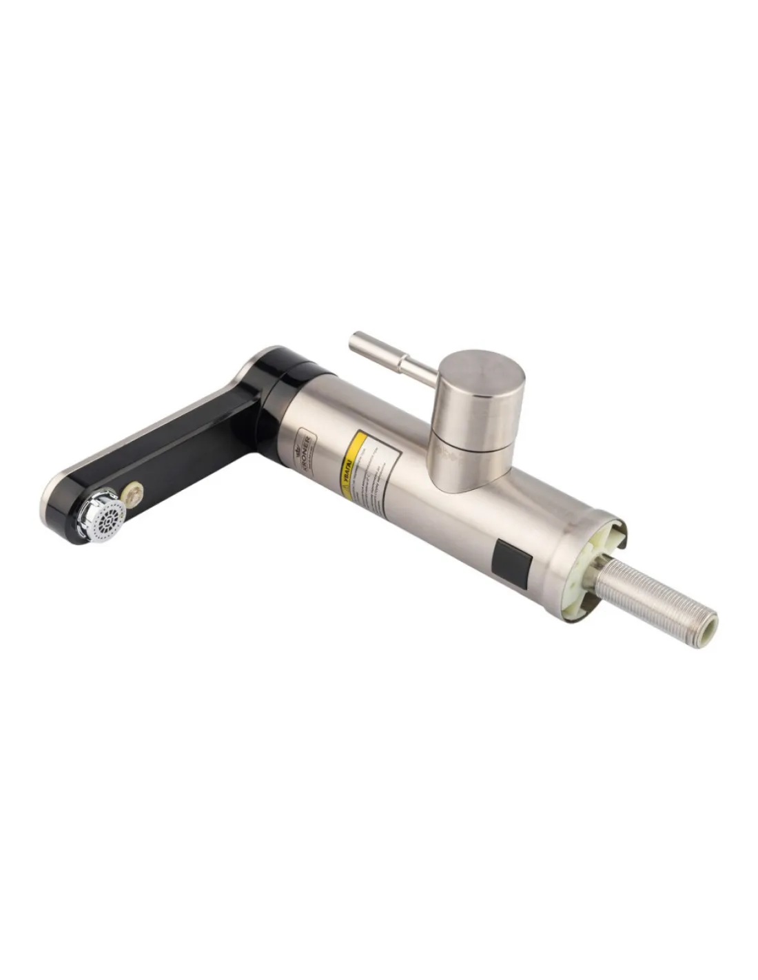 Змішувач для кухні з підігрівом води Kroner KRP Volt - ESG089 виготовлений з нержавіючої сталі та ABS пластику. Має нікелеве покриття з глянсовою поверхнею, яке не стирається при тривалому використанні. Вилив поворотний.