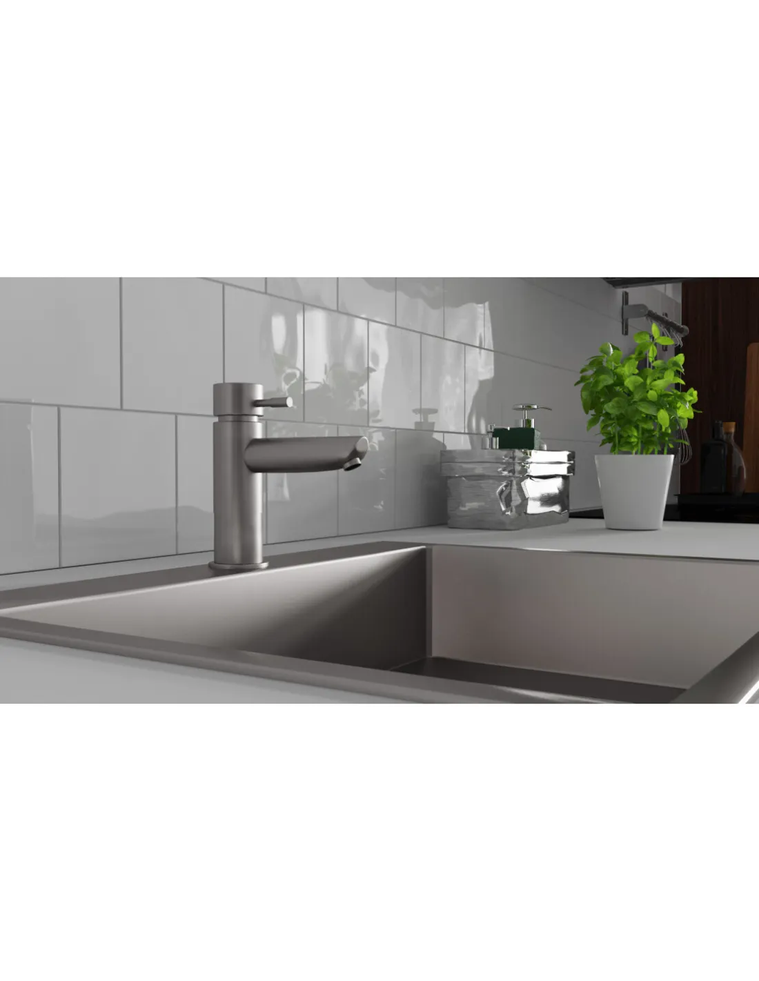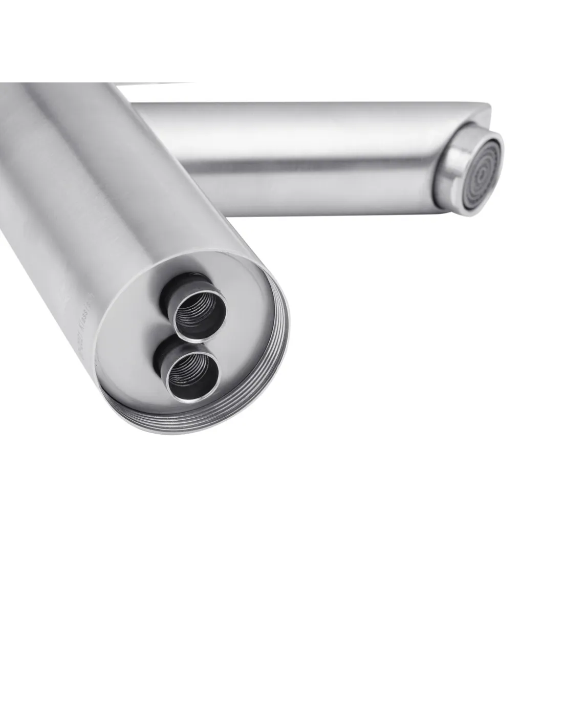 Змішувач для умивальника Kroner KRP Edelstahl Klassisch - ESG010 сталевий брашований - це поєднання зручності, надійності та простоти використання у ванній кімнаті. Призначений для змішування гарячої та холодної води за допомогою вбудованого картриджа та подачі під вибраним натиском на умивальник. Використовується на умивальнику або раковині.