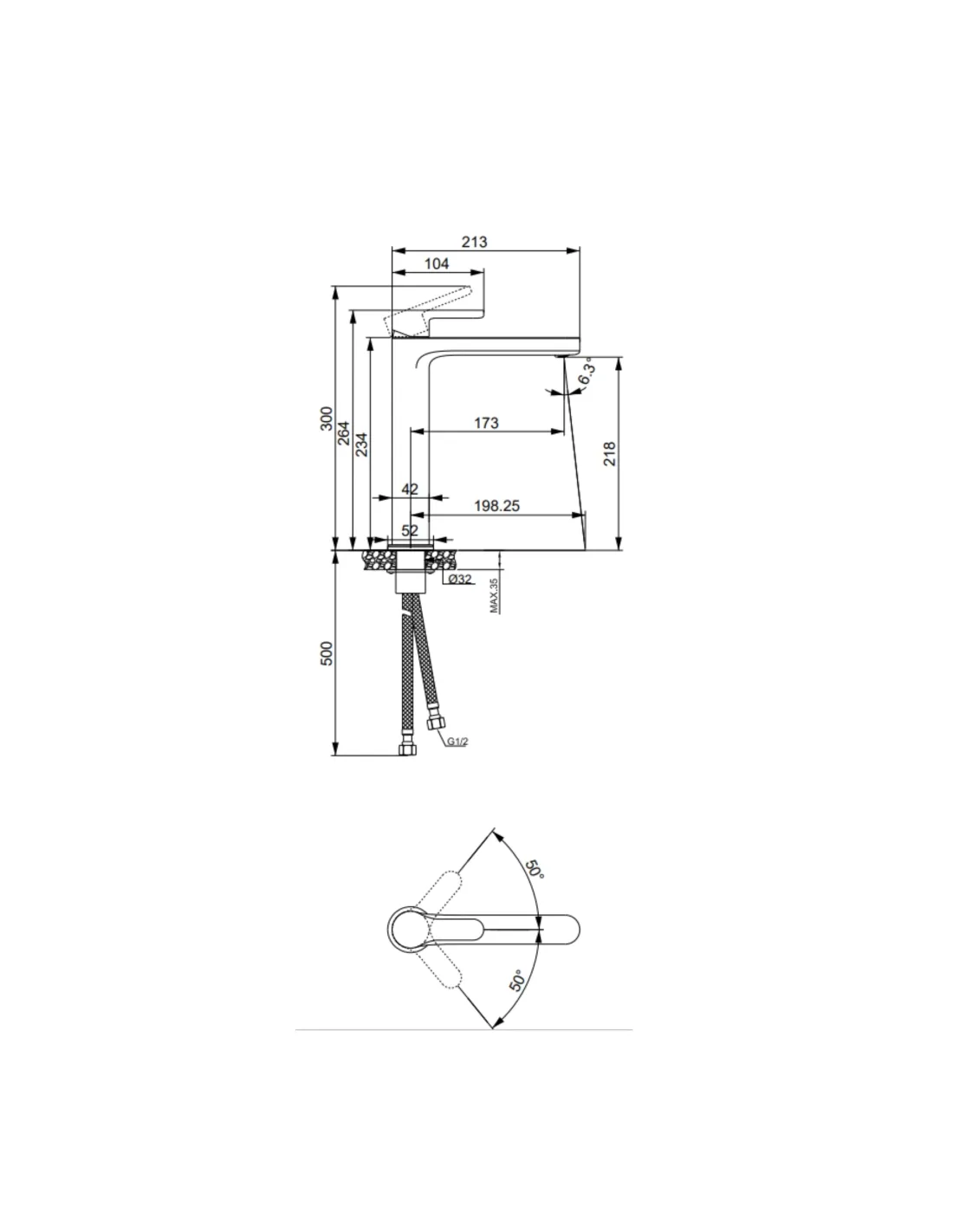- Діаметр підключення: G 1/2,