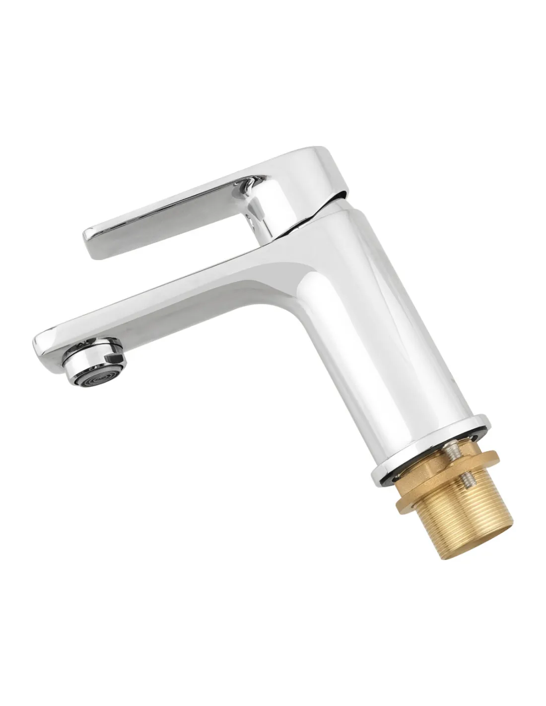 Змішувач для раковини виготовлений із латуні. Покриття змішувача - глянцеве, яке не затирається при тривалому використанні. У процесі виготовлення змішувача використано інноваційні технології виробництва. Вилив не поворотний, виріб литий - цілісний.