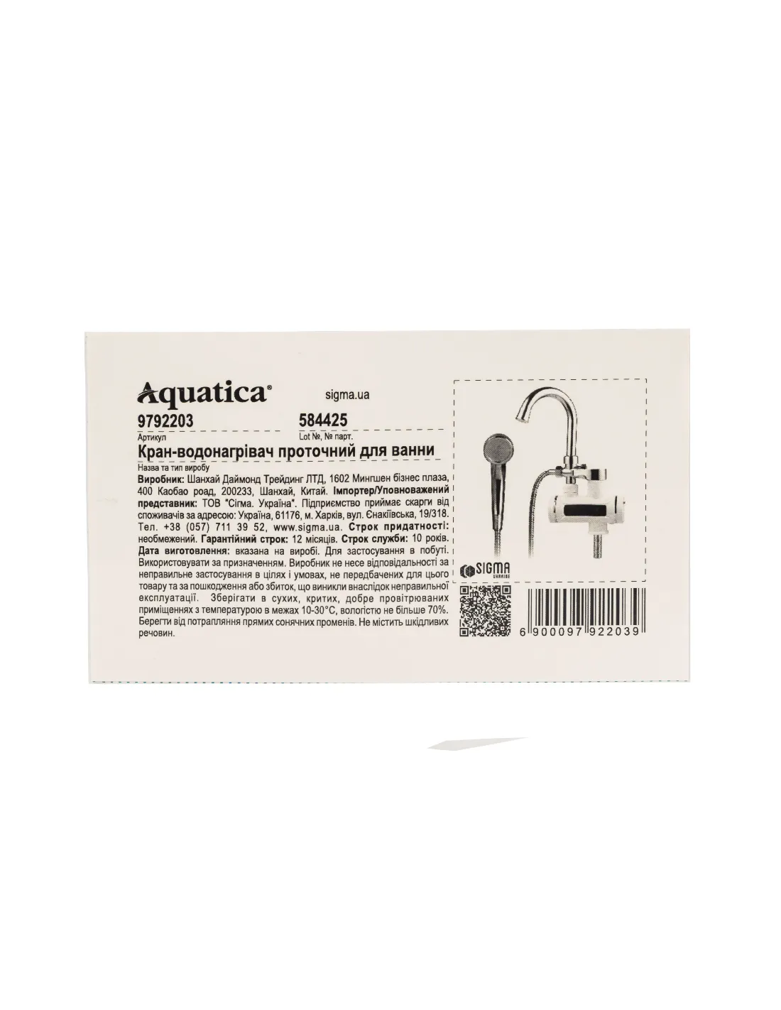 Технічні характеристики змішувача для ванни з термостатом Aquatica 9792203: