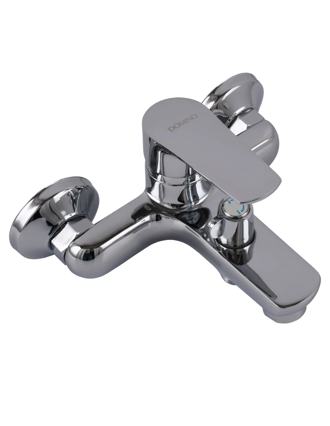 Змішувач для ванни Domino Vito виготовлений із латуні. У процесі виготовлення змішувача використано інноваційні технології виробництва. Вилив неповоротний. На планці змішувача розташовується євро-перемикач, при повороті якого подача води змінює напрямок із крана на душовий шланг та лійку, що розширює його функціональність використання у ванній кімнаті.