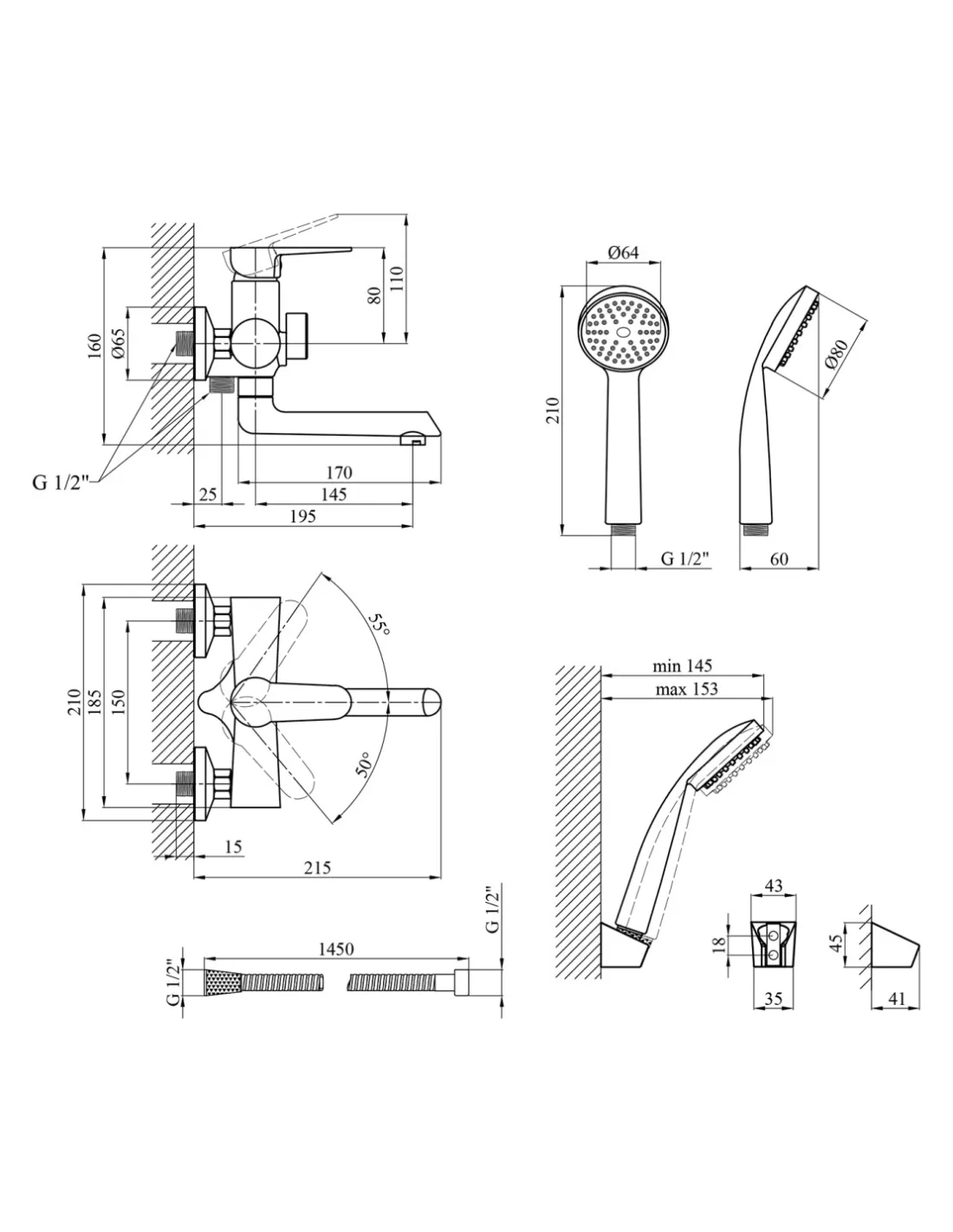Комплектація змішувача для ванни Kroner KRM Elbe - C060: