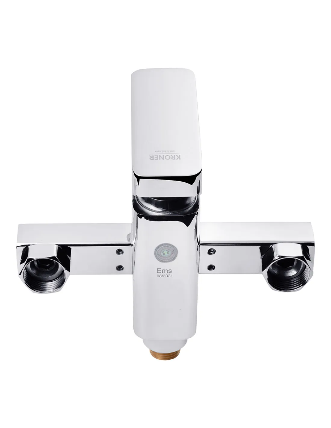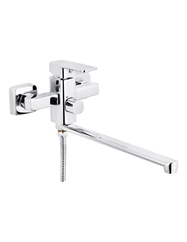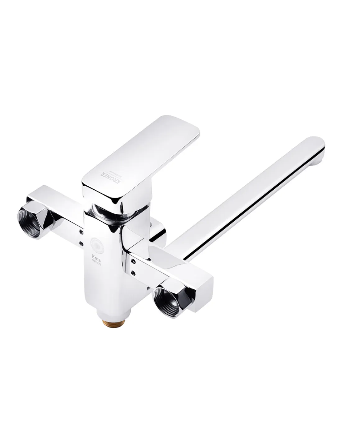 Змішувач для ванни Kroner KRM Ems - C070 - призначений для регулювання температури та подачі води із встановленим напором у ванній кімнаті. Використовується у ванній кімнаті для ванни та умивальника. Виготовлений із силуміну, фактура поверхні – глянсова. Кран має сучасний дизайн, простий у встановленні та використанні. Установка зовнішнього типу на стіну за допомогою двох гайок (ексцентриків). Змішувач обладнаний європейським перемикачем води з крана на душову лійку, що підкреслює його функціональність. Довжина виливу 315 мм. Виливши поворотного типу, що дозволяє його використовувати і для ванної і для умивальника. У комплекті також поставляється душовий шланг, лійка та кріплення до стіни для ручного душу. Управління краном – одноважільне, також важіль використовується для регулювання температури та напору подачі води. Тип підключення – жорсткі підводи для води. Гарантія на виріб 36 місяців. Країна виробник - Німеччина.