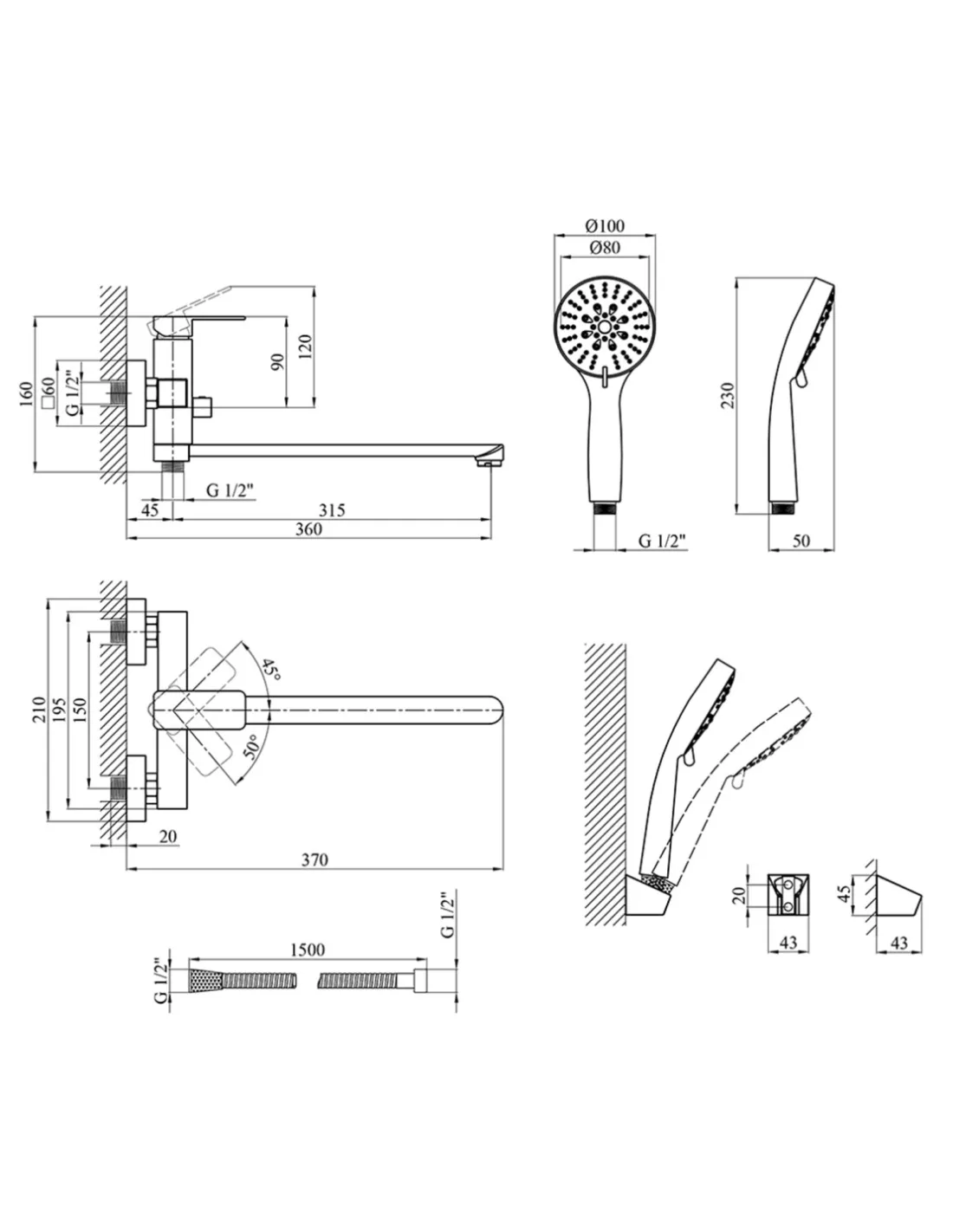 Комплектація змішувача для ванни Kroner KRM Ems - C070: