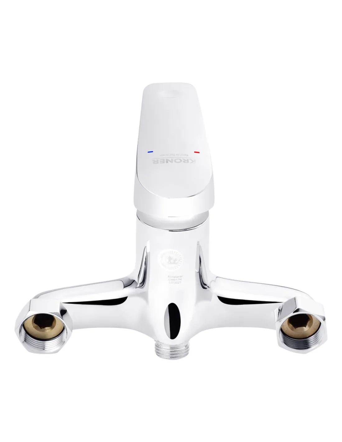 Змішувач для ванни Kroner KRP Konstante - C072 має 2 входи для підключення. Перший вхід для гарячої води. Друга для холодної води. Змішування гарячої та холодної води відбувається за рахунок керамічного картриджа діаметром 35 мм за допомогою рукоятки. Подача води на кран та душову лійку регулюється за рахунок перемикача. Підключення душового шланга відбувається знизу виливу гуся за допомогою гайки на шлангу.