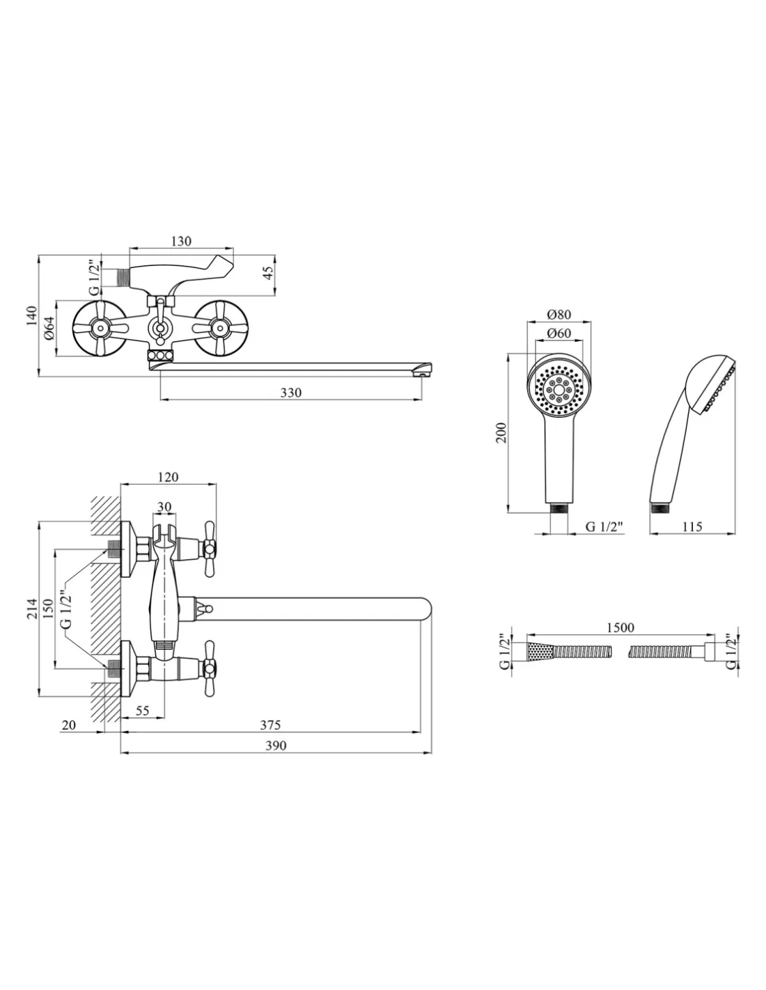 - Шланг душовий 1500 мм,