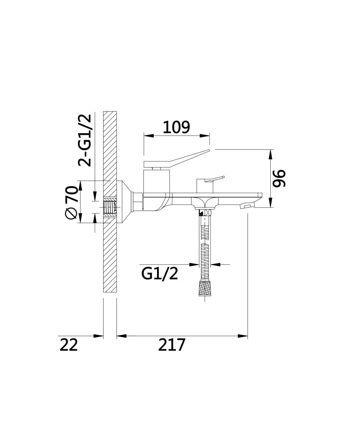 - Висота всього змішувача - 96 мм,