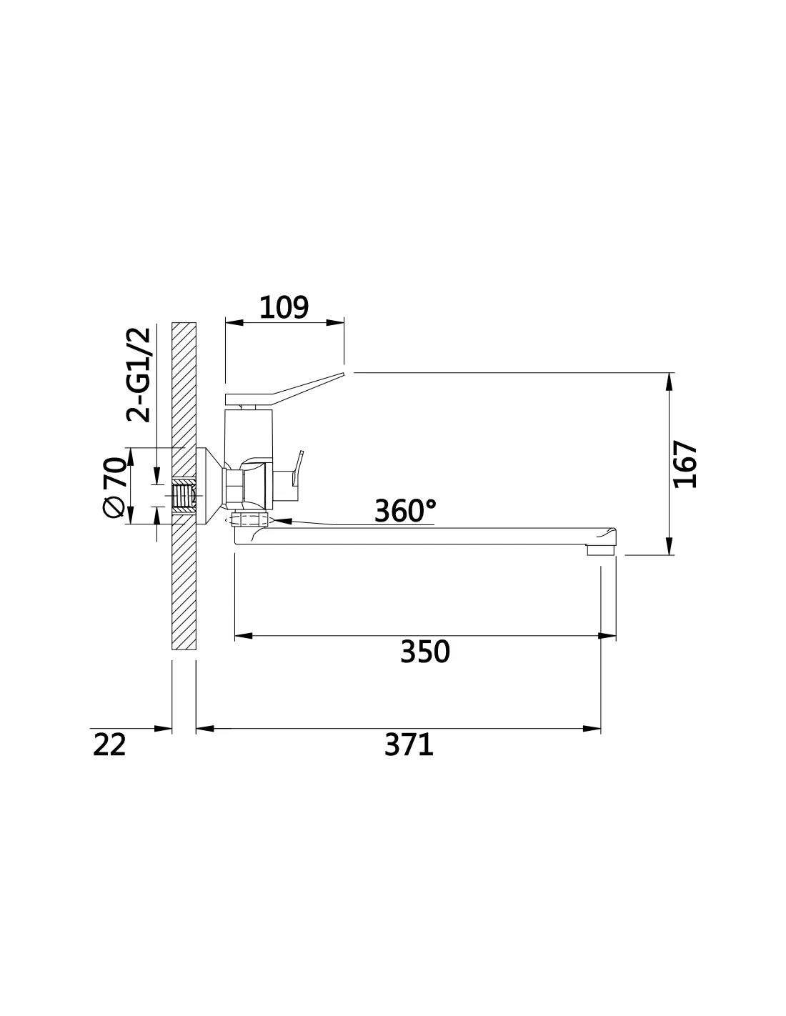 - Висота всього змішувача - 167,
