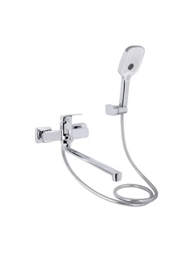 Змішувач для ванни Q-tap Tern QTTER260CRM47587 Chrome - призначений для регулювання температури та подачі води із встановленим напором у ванній кімнаті. Використовується у ванній кімнаті для ванни та умивальника. Виготовлений з латуні, фактура поверхні – глянсова. Кран має сучасний дизайн, простий у встановленні та використанні. Установка зовнішнього типу на стіну за допомогою двох гайок (ексцентриків). Змішувач обладнаний європейським перемикачем води з крана на душову лійку, що підкреслює його функціональність. Довжина виливу 369 мм. Виливши поворотного типу, що дозволяє його використовувати і для ванної і для умивальника. У комплекті також поставляється душовий шланг, лійка та кріплення до стіни для ручного душу. Управління краном – одноважільне, також важіль використовується для регулювання температури та напору подачі води. Тип підключення – жорсткі підводи для води. Гарантія на 5 років. Країна виробник – Чехія.