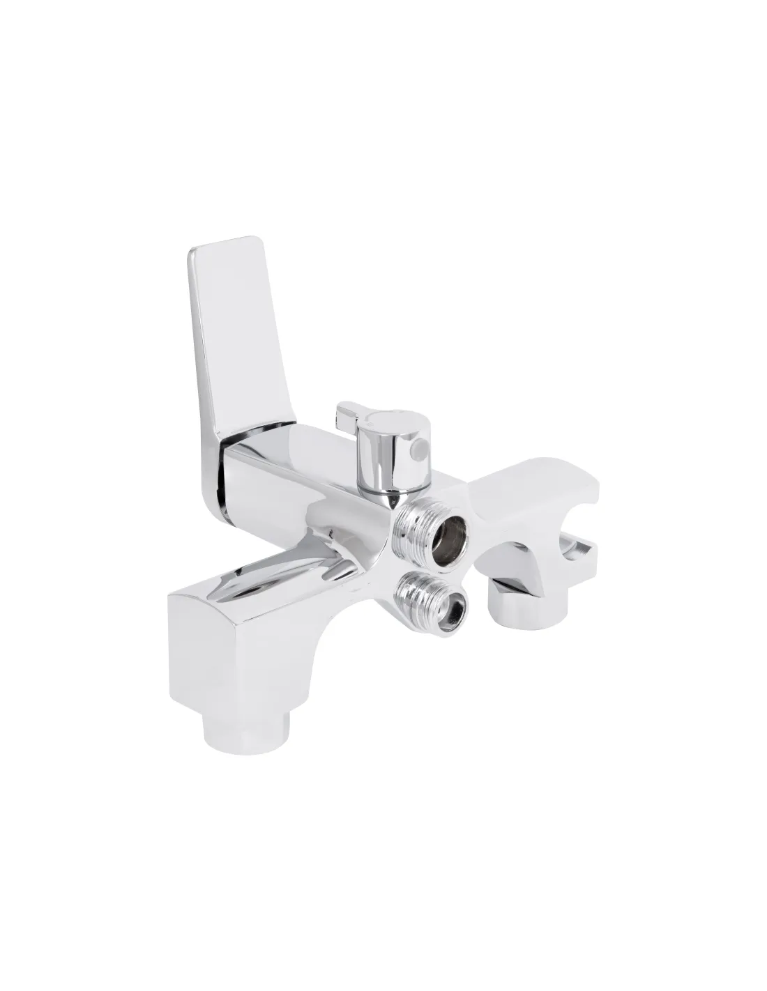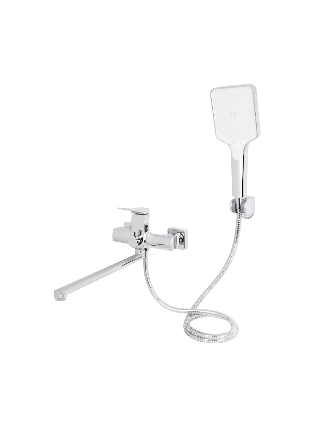 Змішувач для ванни виготовлений із латуні. У процесі виготовлення змішувача використано інноваційні та екологічно безпечні технології виробництва. Вилив довгий, поворотний - що дозволяє використовувати для ванної, душу та умивальника. На вилив змішувача розташовується євро-перемикач, при натиску на який подача води змінює напрямок з крана на душовий шланг і лійку, що розширює його функціональність.