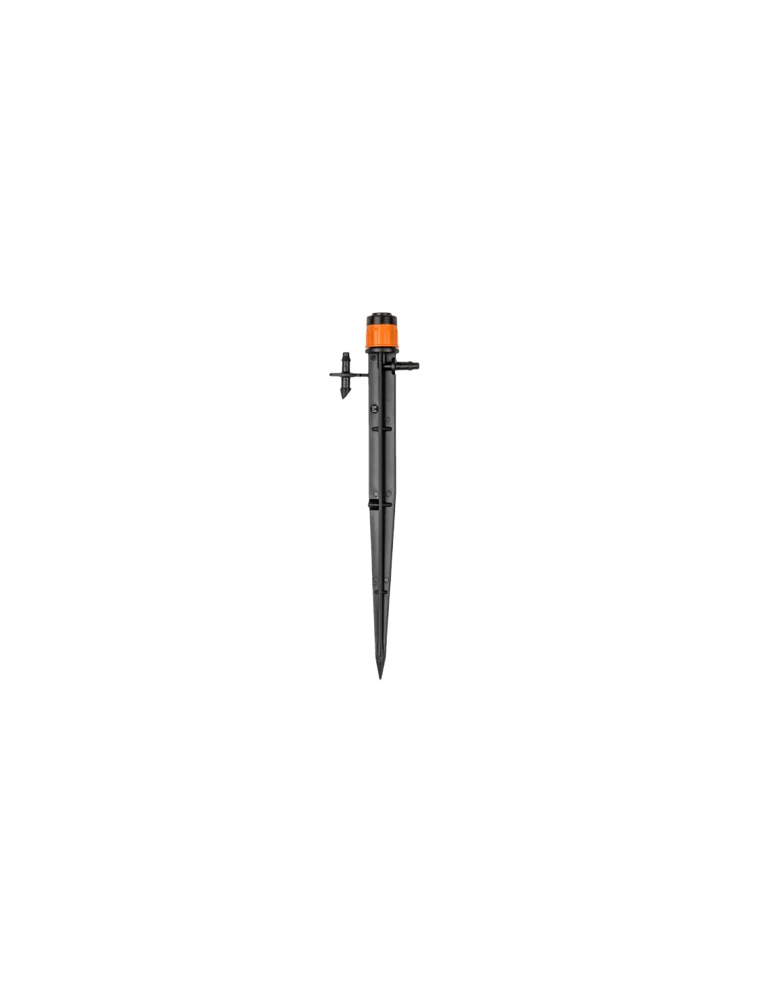 Зрошувач встановлений на кілочку, що дозволяє зручно розмістити його біля рослини та направити полив безпосередньо у прикореневу зону. Регульована крапельниця дозволяє контролювати витрату води від 0 до 80 л/год, що дозволяє підібрати оптимальний режим поливу для різних рослин.