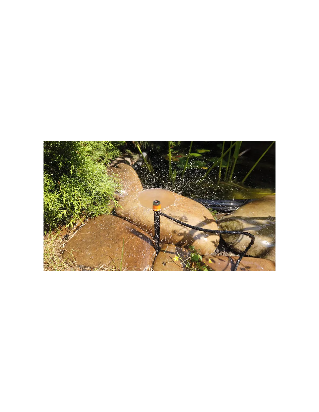 Подача води регулюється поворотом верхньої кришки зрошувача, що дозволяє змінювати радіус розпилення. Виріб виконаний із міцного пластику, стійкого до ультрафіолету, вологи та корозії, завдяки чому підходить для тривалого використання на відкритому повітрі.